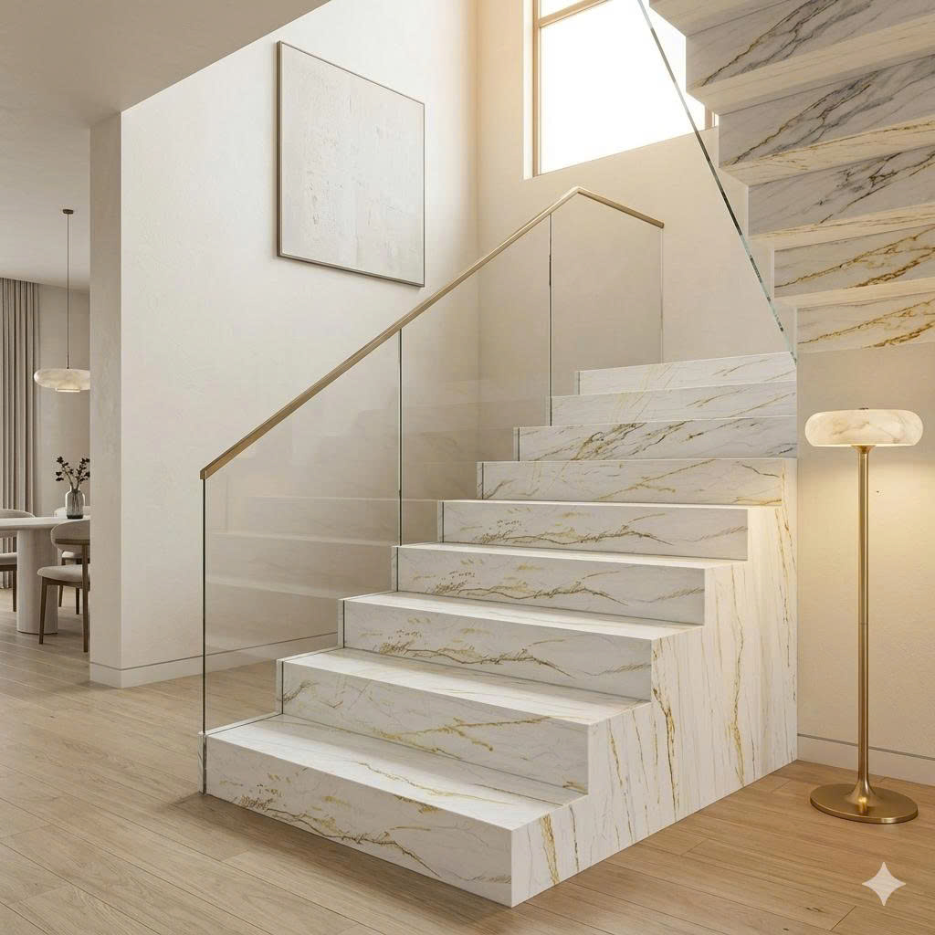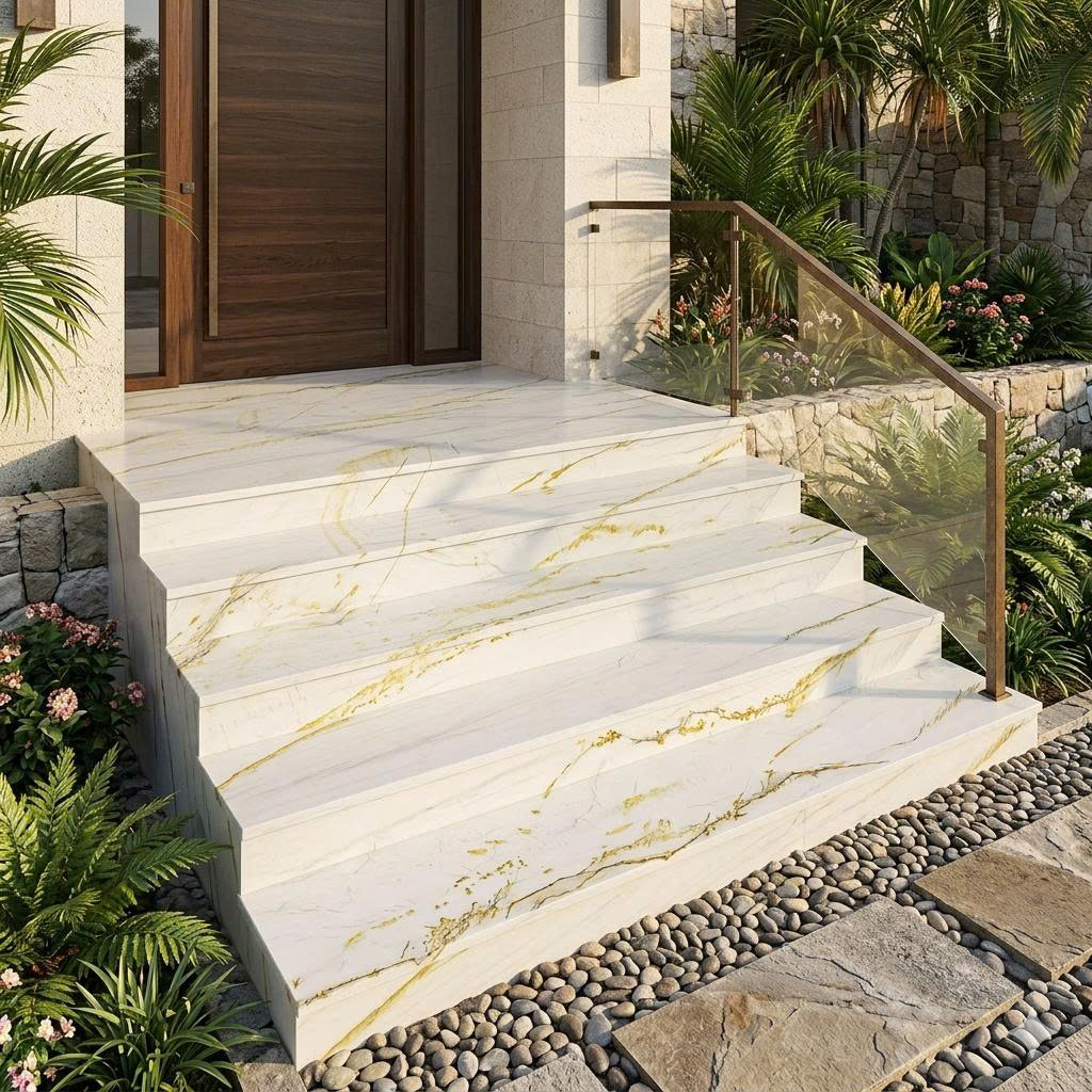 Đá ốp cầu thang Monte Blance Gold L02 – Đá Quartz tự nhiên