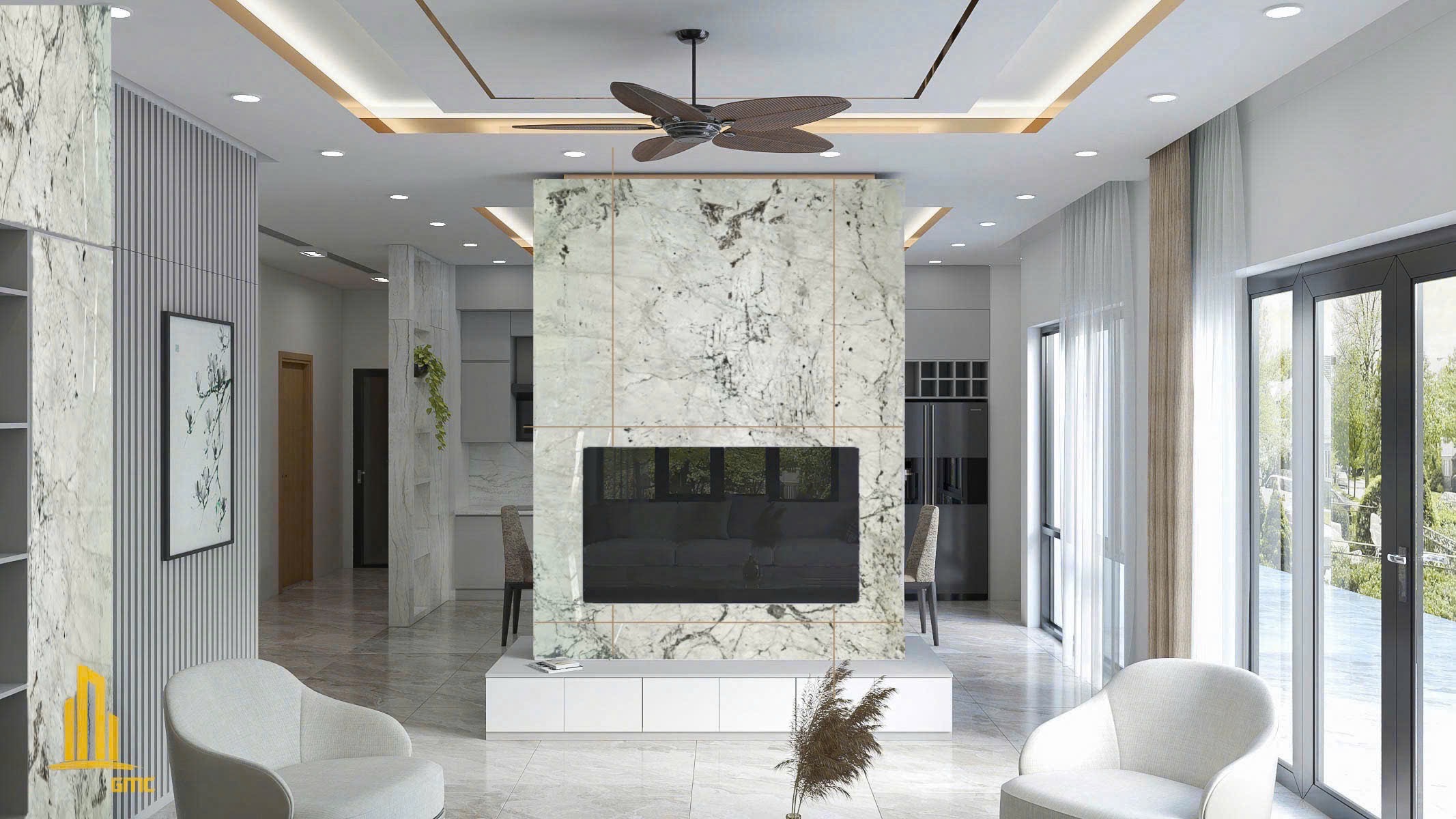 Đá ốp phòng khách Colombi White – Đá Granite tự nhiên