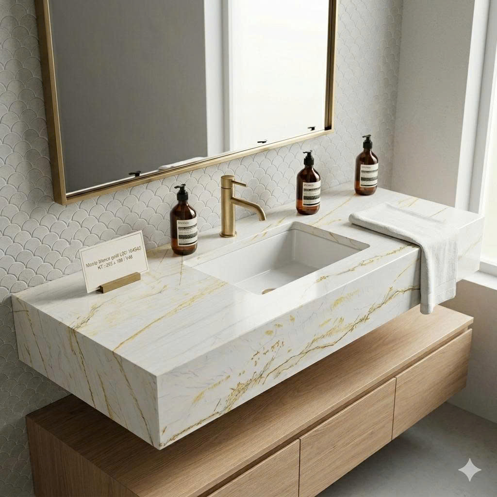 Đá ốp phòng tắm Monte Blance Gold L02 – Đá Quartz tự nhiên