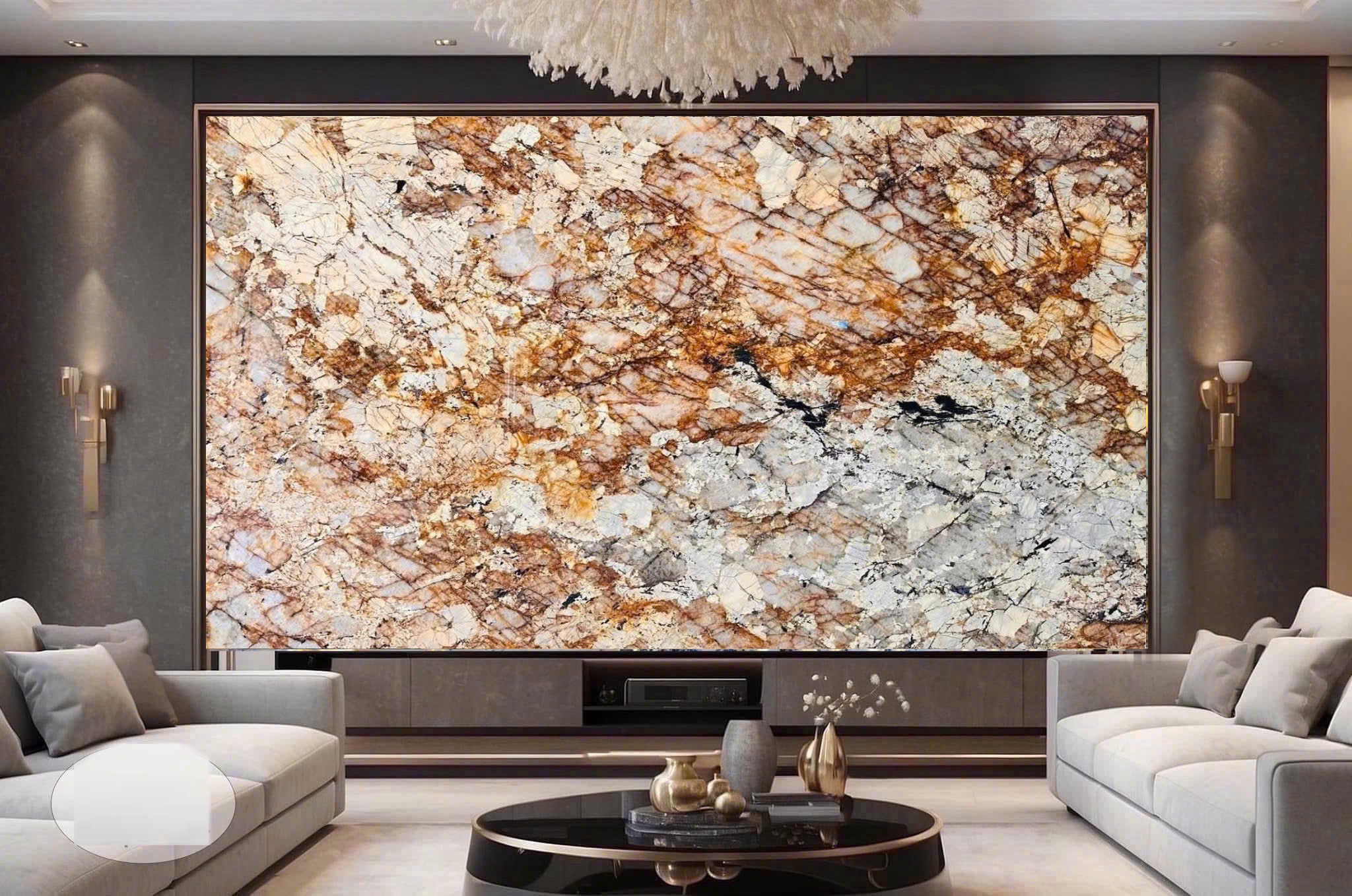 Khám phá vẻ đẹp hoàng gia của Tranh đá Patagonia Gold – mẫu tranh đá tự nhiên cao cấp đang thịnh hành nhất tại Kho Đá GMC năm 2025.