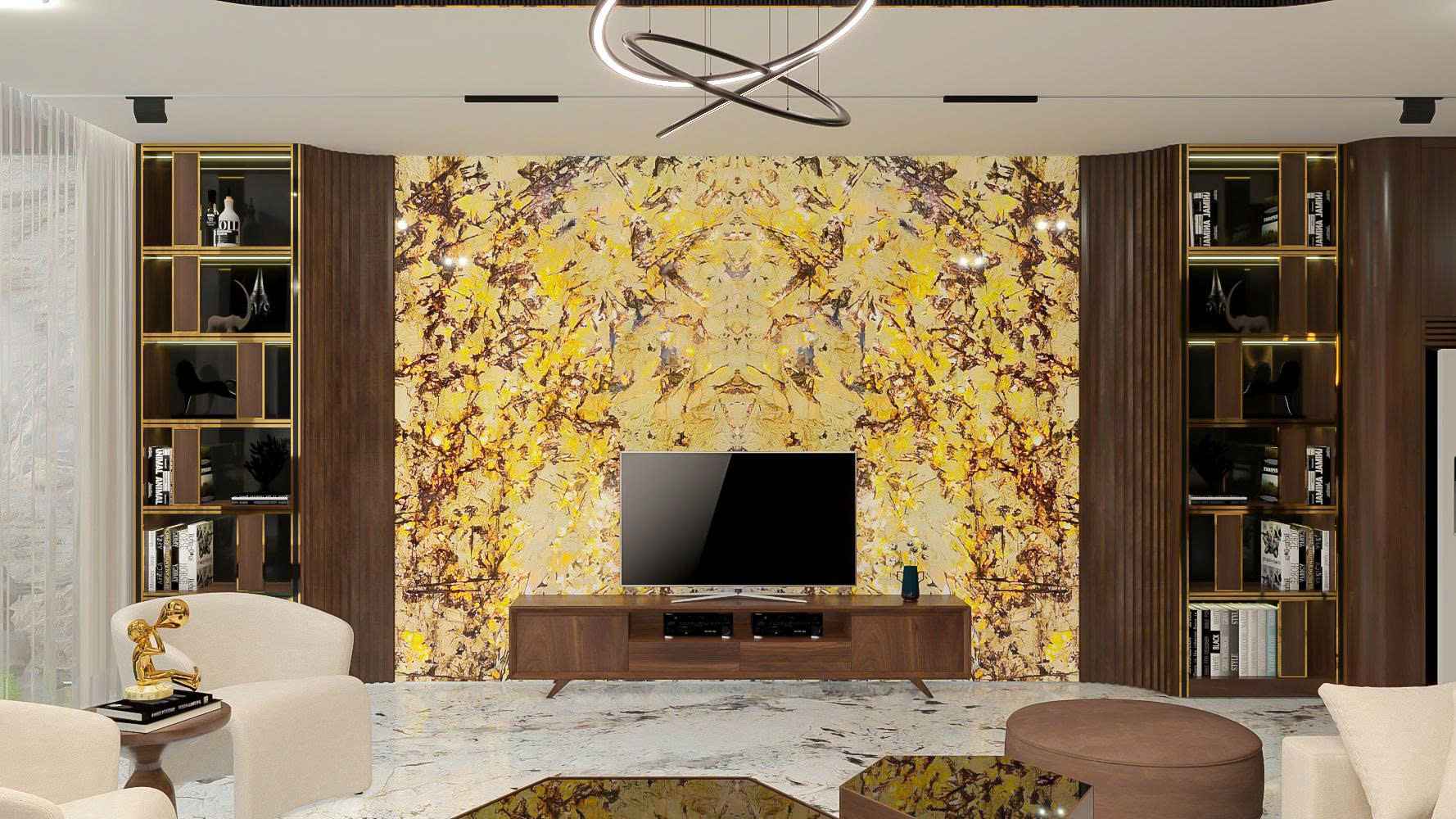 • Vách TV phòng khách – trở thành “trái tim” của không gian